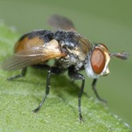 Why ‘ghosts of the cloud forest’? This somewhat dramatic title refers to the rarity of Erythromelana species. Total parasitism of Eois (from over 5000 rearings) is less than 0.5% and we only recovered a single specimen from a pan trapping effort at Yanayacu that collected over 2000 other tachinids. Several of the described species are known from just a handful of specimens. Still, these ‘ghosts’ can be observed, if one knows where to look. On a few occasions they have been seen, flitting about sunlit leaves over small streams in deep cloud forests of Costa Rica and Ecuador.